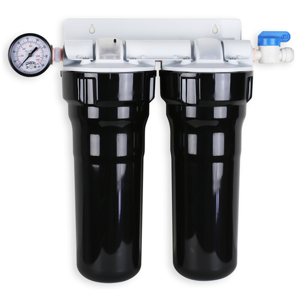 A water pressure gauge is included to monitor pressure variations and spikes. It also indicates cartridge plugging (when differential pressure exceeds 15 psi).