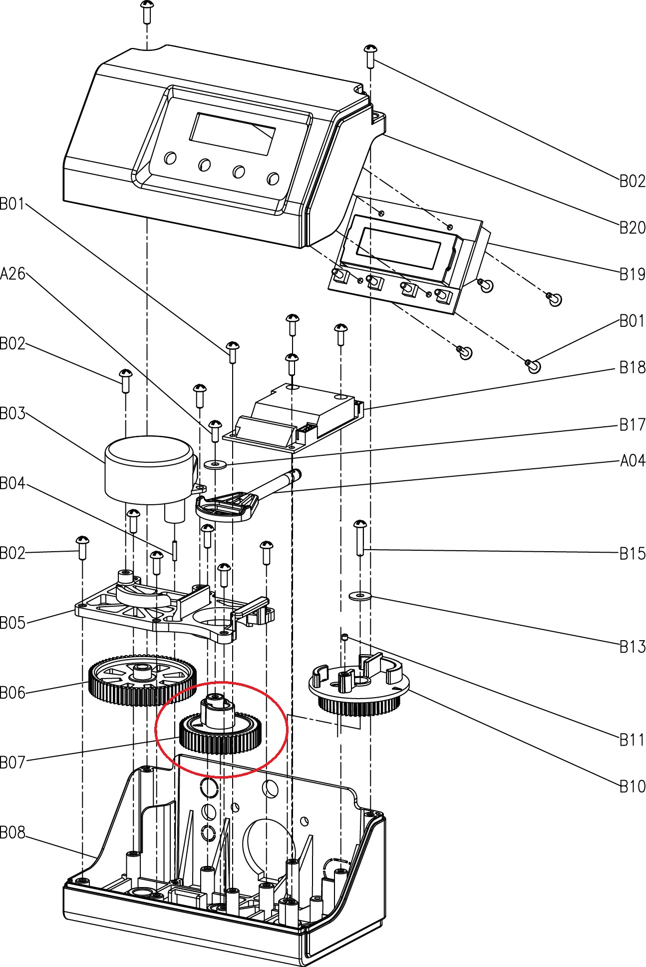 Gear circled in red on exploded view