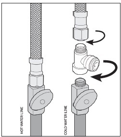 Provides water connection from undersink cold water pipe (with 3/8″) valve to water filtration system. Cannot be used if undersink water pipe does not have a 3/8″ valve.